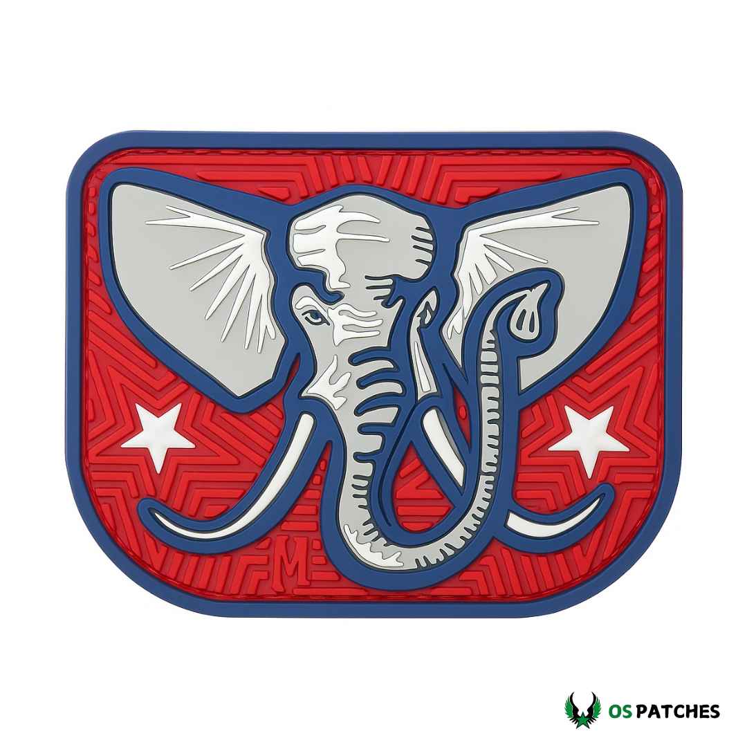 This red elephant PVC patch features a bold design with a detailed gray elephant head and striking white stars on a red background. Made with durable, waterproof PVC, it ensures long-lasting quality and vibrant colors. Perfect for tactical gear, backpacks, uniforms, and jackets, this patch comes with Velcro backing for easy attachment and removal. A great choice for collectors and those who want a unique, standout style.
