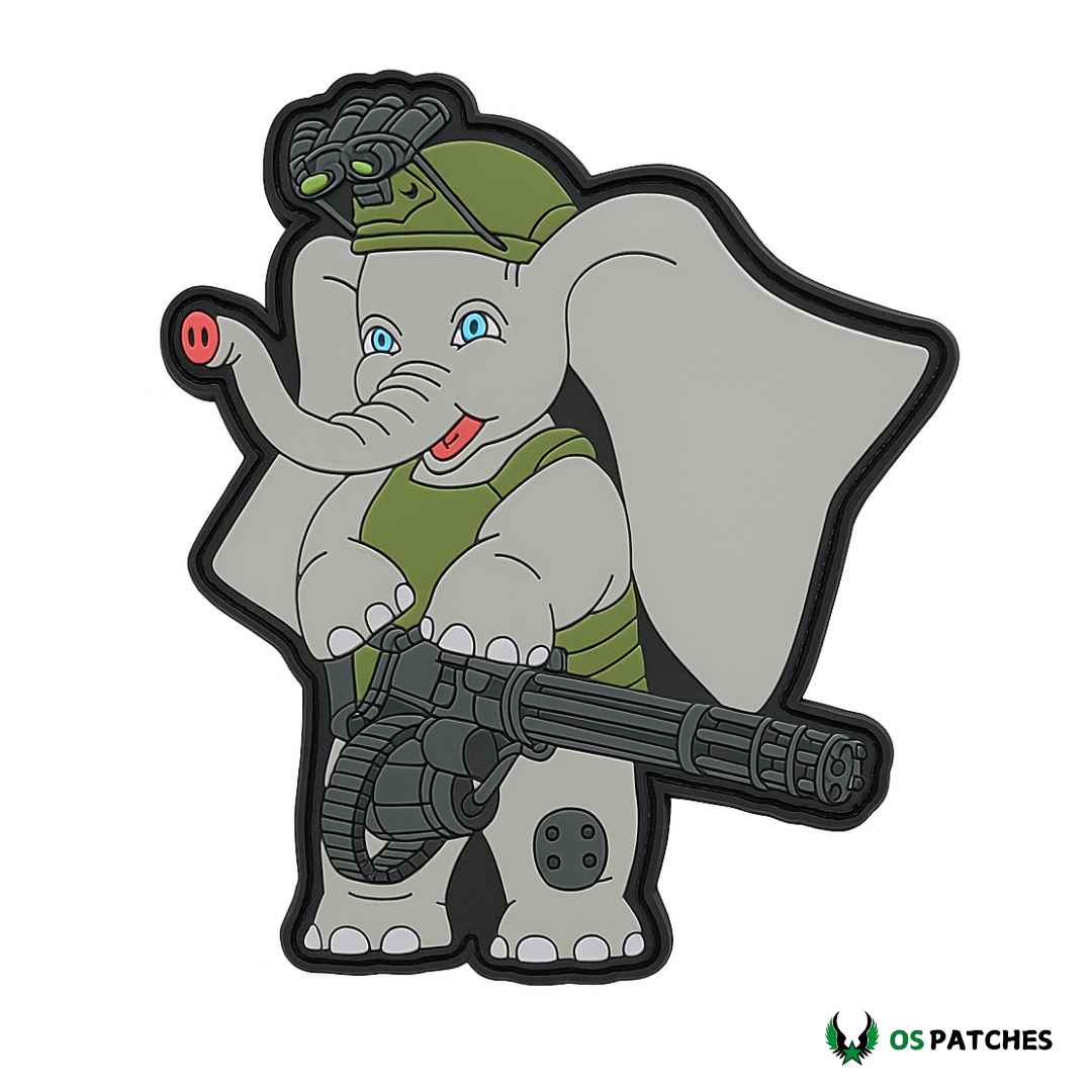 This PVC tactical patch features a unique elephant design with military gear and a heavy weapon. Made with soft PVC material, it offers high detail and durability. The Velcro backing makes it easy to attach and remove on jackets, vests, hats, or backpacks.
