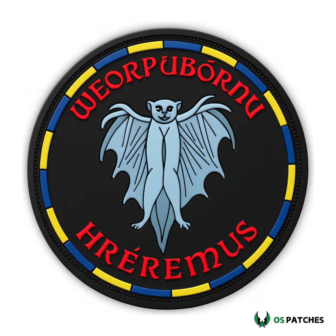 This round PVC patch features a striking blue bat with detailed wings and bold lettering. Designed in a medieval-inspired style, it combines durability with creativity. Made from premium PVC, it is waterproof, flexible, and long-lasting. The vibrant red, yellow, and blue border makes it stand out on tactical gear, jackets, or backpacks. Perfect for collectors, airsoft players, or anyone who loves unique patch art.