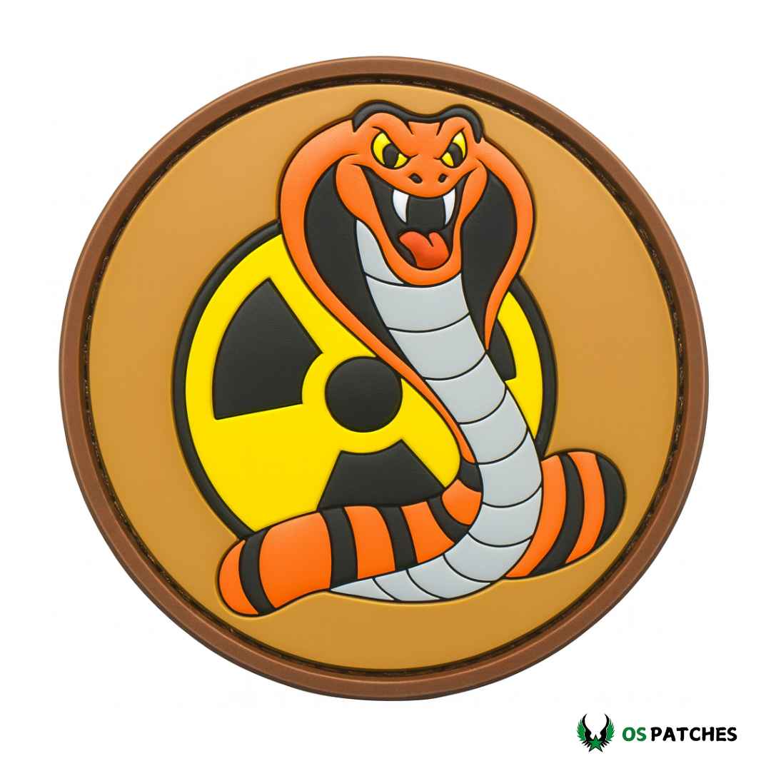 each for 50A detailed cobra snake PVC patch with a radiation symbol, designed in bright colors and durable material for long-lasting use.